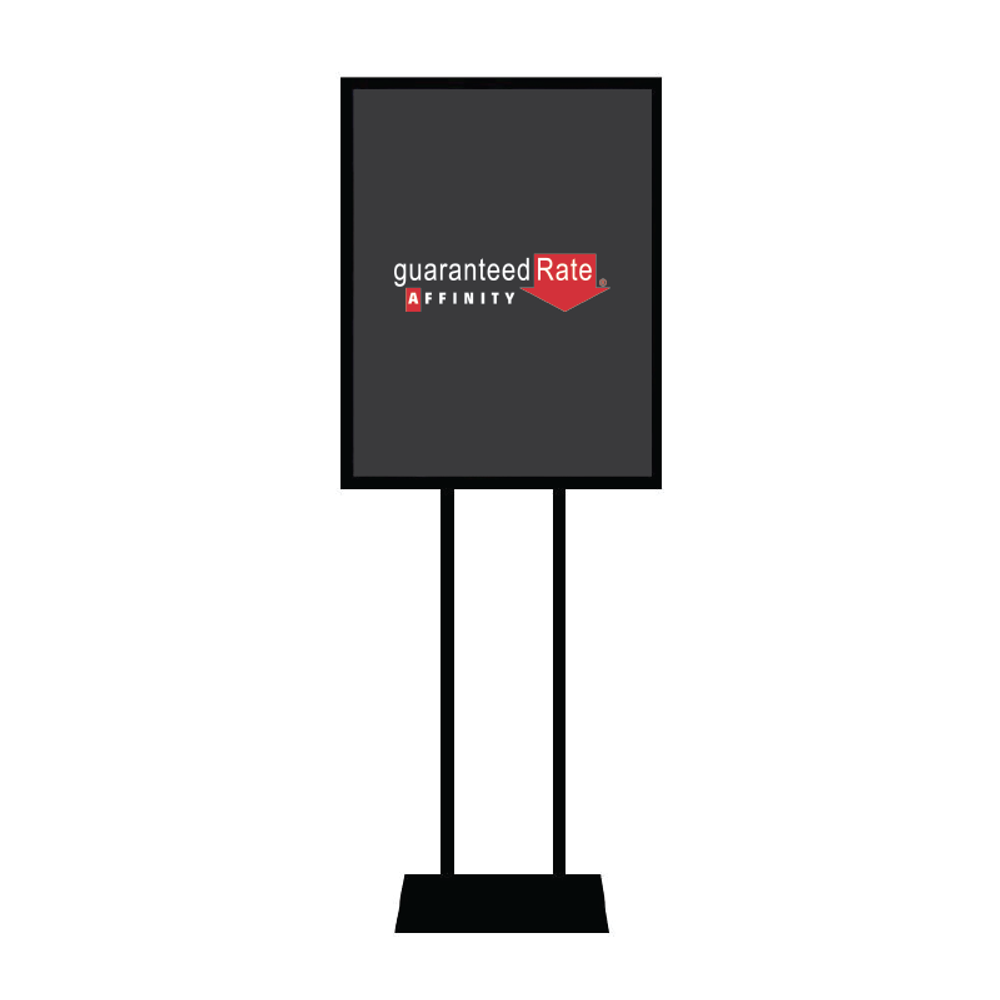 The floor standing Poster Stand accommodates a 22" x 28" drop in rigid graphic and is 60" tall. This sign holder is perfect for retail advertising and is commonly seen in front or mid-store. Direct print double-sided PVC graphics quickly drop in the frame for quick display.